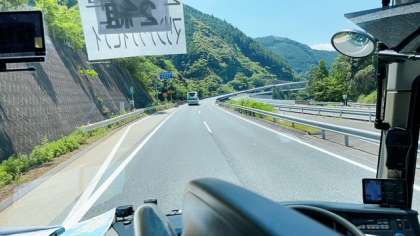 現在、バスは昼食をとるためレストラン「かつお船」に向かい走行中です。