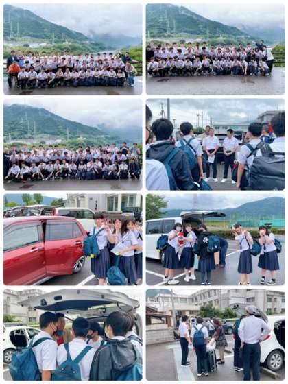 グッドタイミングで雨が上がった、吉野川SAでのクラス写真