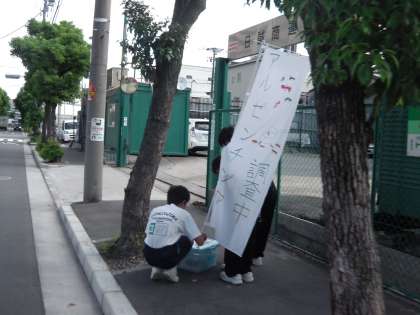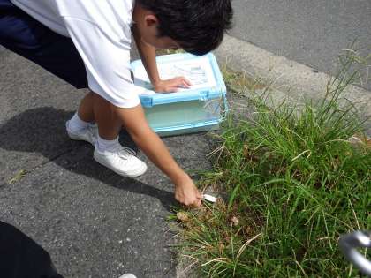 科学部で新北島地区のアルゼンチンアリの調査をしました。調査中に住民の方から「アルゼンチンアリの調査やってくれているのか」と声をかけてもらいました。