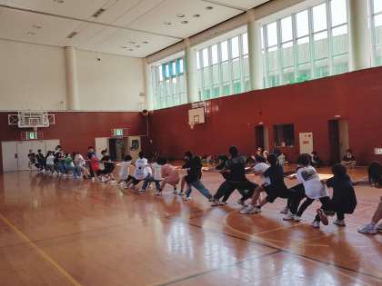 体育館レクは綱引き大会をしています。