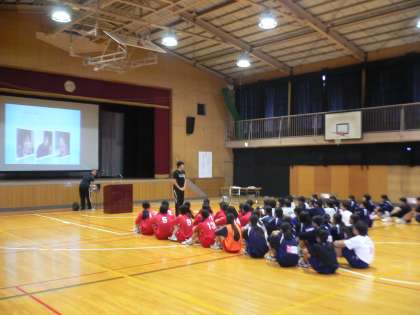 本日大谷佐知子さんを講師にお迎えしてトップアスリートによる「夢・授業」が行われます。今、大谷佐知子さんによ講演が始まりました。