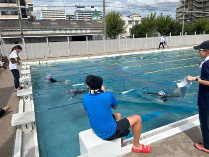 5-6限。1年生は待ちにまった水泳大会になりました。選手一人一人をクラスのみんなや先生が応援して大盛り上がりです!