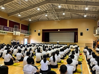 月曜日の朝は全校集会です。