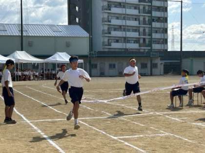 距離がのびました。100mでも、中学生のパワーはすごいですね!最後まで頑張ってください。