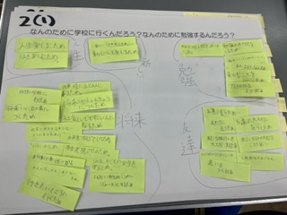 「なんのために学校に行くのか」についてグループで考えました。