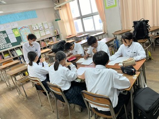 1年学代会では各クラスの様子の確認をし、その後、その反省を生かした目標、具体的方策を決めていました。
