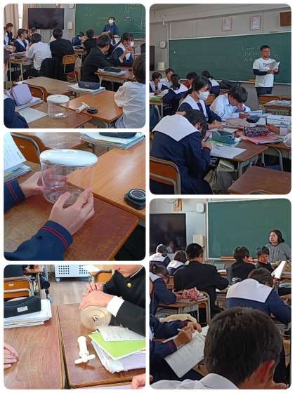 理科は大気の実験をしています。