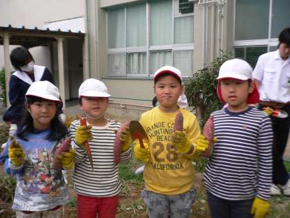 10月22日に校区内の子ども園から本校のふれあいガーデンで育てているさつまいもをほりにたくさんの園児が来てくれました。