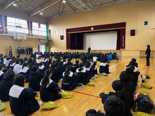 月曜日の朝は全校集会です。
