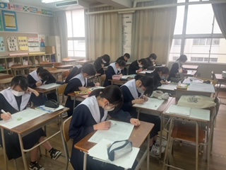 3年生の英語科では、週に一回習熟度別授業を実施しています。発展クラスでは、来週の入試に向けてたくさん過去問を解いています。