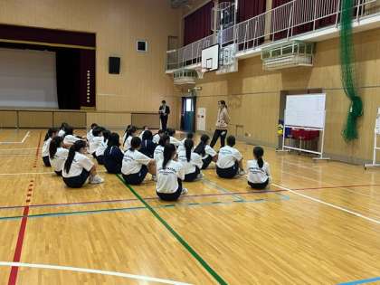 今日はオーバーヘッドパスやアンダーハンドパスなど、バレーボールの試合に必要な基本的な動作の練習をしました。