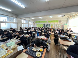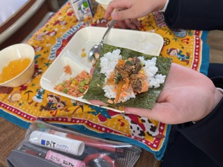 今日の給食は、卒業祝い献立で手巻き寿司でした。