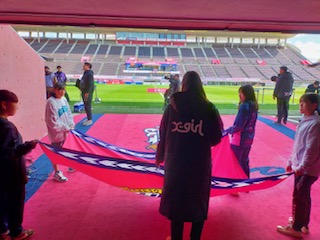 セレッソ大阪ヤンマーレディースさんのWEリーグを女子サッカー部で盛り上げにいきました!入口でのボランティア、そしてフラッグベアラーとエスコートキッズもさせていただきました。