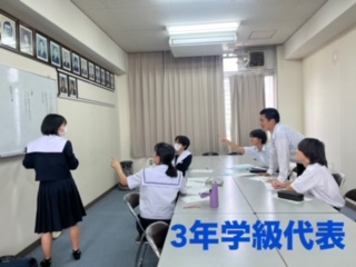 3年学級代表会では委員長、副委員長、書記を決め、その後前期の目標と今月の目標、その具体的方策を決めました。