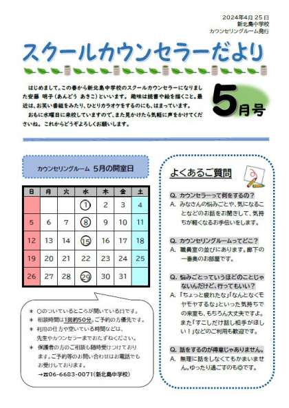 スクールカウンセラーだより5月号が発行されました。