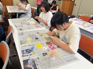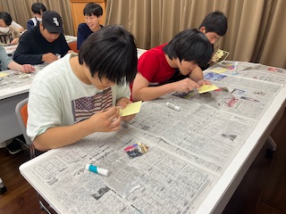 ランプシェード作りのあとは砂絵アートです。