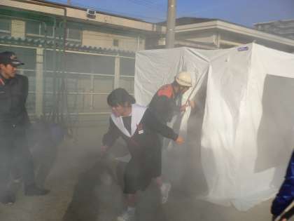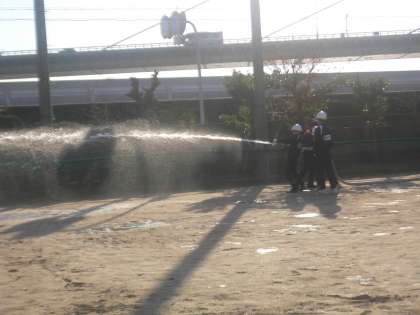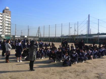 本日、住之江消防署のご協力のもと、避難訓練及び消火訓練等が行われました。3学年が避難し始めてから5分で避難が完了しました。避難訓練の後は生徒たちによる消火訓練が行われました。また、1年生は煙体験を行いました。