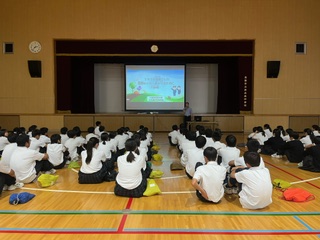 今日は住之江警察から講師の先生をお迎えして、SNS等のトラブルや薬物乱用に関する犯罪についてのお話を聞きました。
