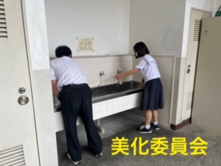 学校全体をキレイにするための具体的方策を考え、1年生は廊下をモップがけしてキレイにする。2年生は普段の掃除から隅々までキレイにする。3年生は大掃除名前からキレイにするという目標をたてました。