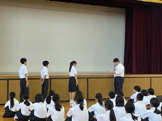 男女バスケットボール部とバレーボール部の表彰がありました。