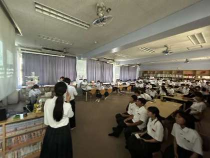 お昼休みは図書室でビブリオバトルが開催されました。多くの生徒の関心を得た本はなんでしょうか。