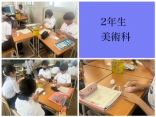 二年生の美術の授業では、粘土で和菓子を作っています。