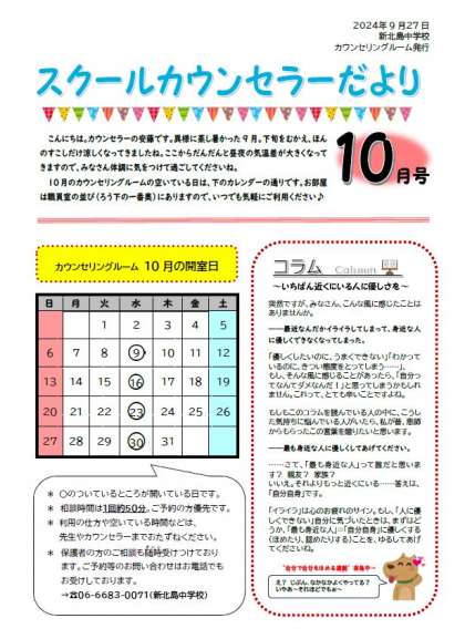 スクールカウンセラーだより10月号