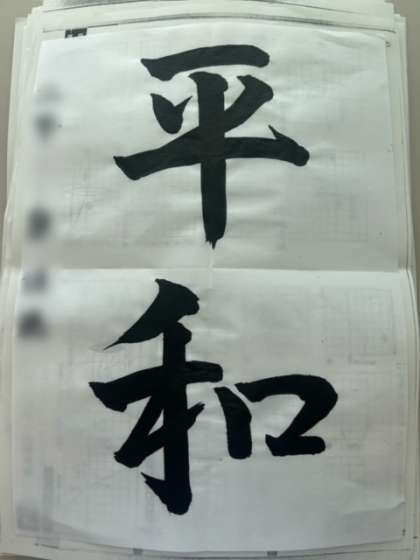 習字で平和を書きました。上手にかけましたね。今程、世界に必要な言葉だと思います。平和な世界に。