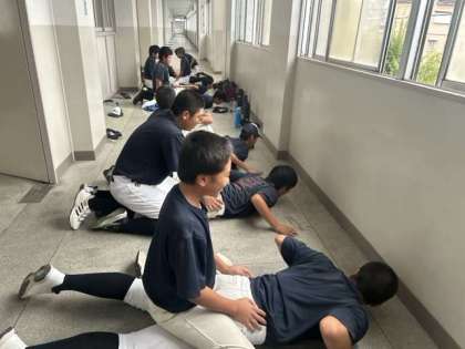 グラウンド状態が悪いため、室内トレーニングです!頑張ってください。