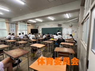 新しいメンバーになった体育委員会では、委員会での役割を決め、自己紹介をして仲を深めたのち、目標と具体的方策を決めました。