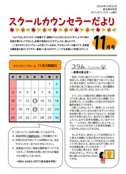 スクールカウンセラーだより11月号