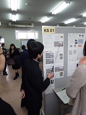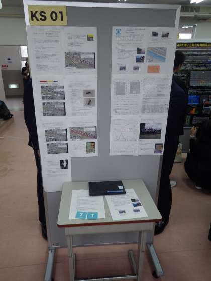 科学部は私立明星中学校・高等学校で開催された『サイエンスキャッスル 関西大会』にポスターセッション(研究について書いた紙(ポスター)の前で説明する発表形式)で発表を行いました。審査員や中高生・顧問の先生などに説明をして、質問を受けていました。