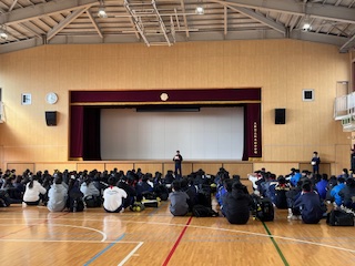 縦割り駅伝が終了し、学校に戻って閉会式です。