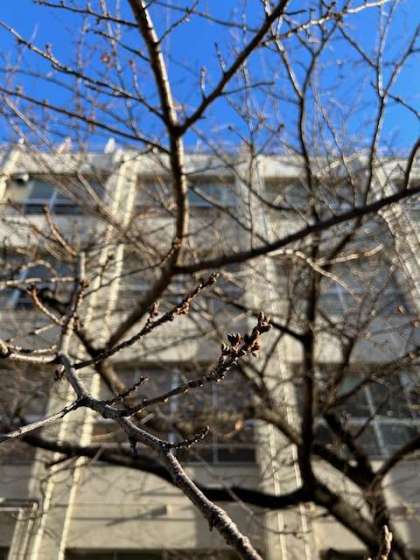 寒気が日本を覆い、冬を実感する季節を過ごしていますが、春に向けて着々と中庭の桜は準備をしているようです。桜咲く春に向けて、3学期も頑張りましょう!