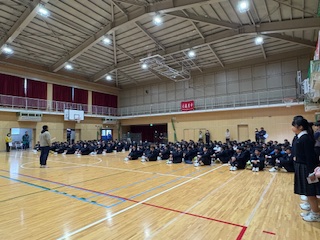 1,2年生合同でお別れ集会に向けての練習をしました。