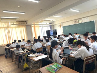 班で自己紹介の練習をしています。実習生の先生にも英語で自己紹介をしてもらいました。