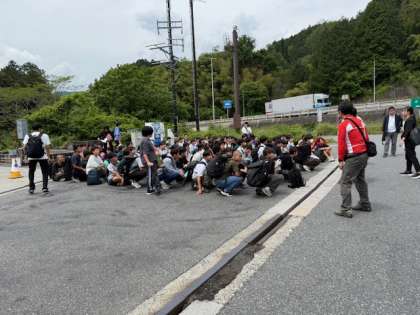 クラスのバスに乗り換えて、ナガシマスパーランドに向かいます!