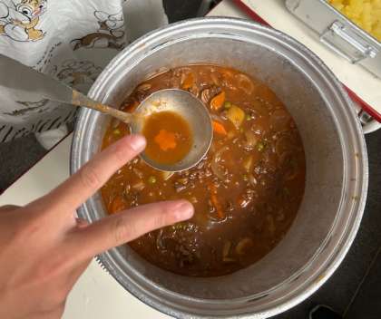 給食の様子を見に行くと、なんと…お花型のにんじんが!小さなラッキーを見つけましたね ♪