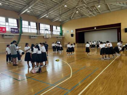 今週水曜日にある「しんきたんフェス」に向けて、3人4脚の練習をしています。各学年1人ずつのチームです。学年をまたいで、息を合わせて頑張っています!