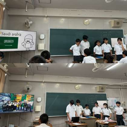 各班が、国の紹介を英語で行っています。