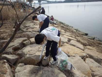 3月6日(日)に大和川の河原の掃除を行う『大和川クリーンアップ大作戦!!』が高速道路の高架下で開かれ、科学部も清掃活動に参加しました。