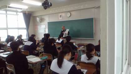 毎回、授業の最初に新聞を使ってのお話があります。自分だけのことだけでなく、身の回り、社会に目を向けることが大切ですね。