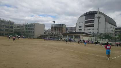 本校グラウンドに12校のソフトテニス部が集まり、春季総体予選個人の部を行いました。