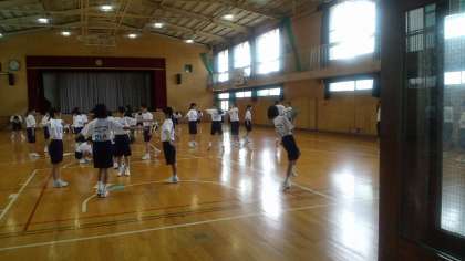 1年生の保体の授業風景です。ラジオ体操の練習です。