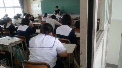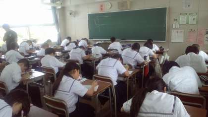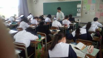 試験中の写真ではありません。今日の午前中の授業風景です。上の写真は国語の漢字の学習の様子です。下は英単語の学習です。試験直後ですが、1年生は気を緩めることなく授業に取り組んでいます。