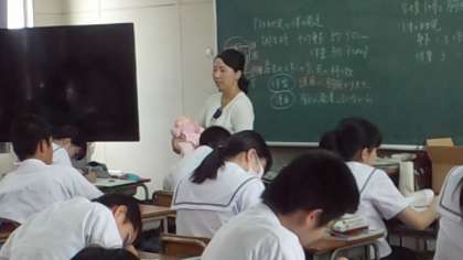 3年生家庭科保育分野の授業風景ですが、当然先生が抱いているのは人形です。新生児の体重はだいたい3000g前後、それが1年後には3倍になるのですね。身長は1.5倍になるようです。