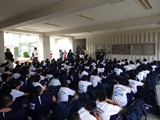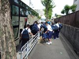 1年生一泊移住で生徒は予定より早く到着し、14時40分に学校到着、14時50分に解散して下校しました。