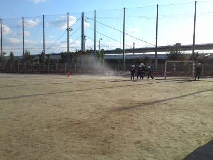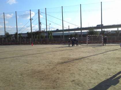 自衛消防訓練 火災時の避難訓練と放水の練習を