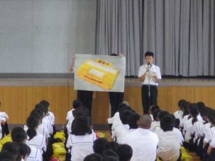 7月20日(水)に終業式のあとの全校集会で、科学部が調査しているアルゼンチンアリの活動について、大阪府立大学の調査も始まったので、全校生徒に広報しました。また、大阪府立大学で研究している学生の方の調査に科学部が協力しました。