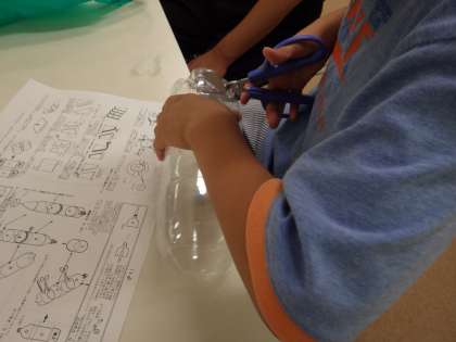 小学生7名が参加して、ペットボトルロケットを一所懸命作成していました。